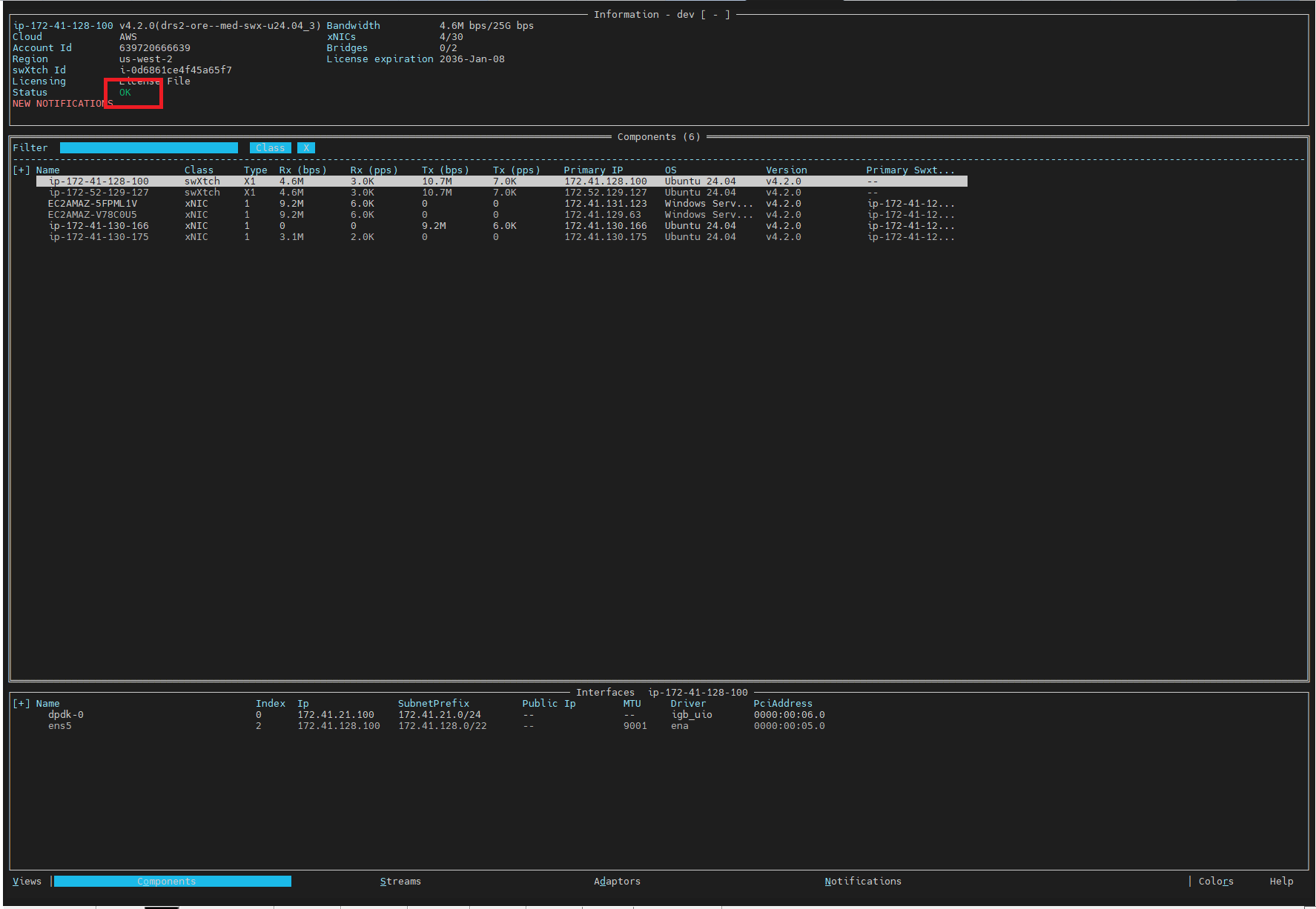 After reboot, validate that the cloudSwXtch is running using the command below and checking that the status is OK: