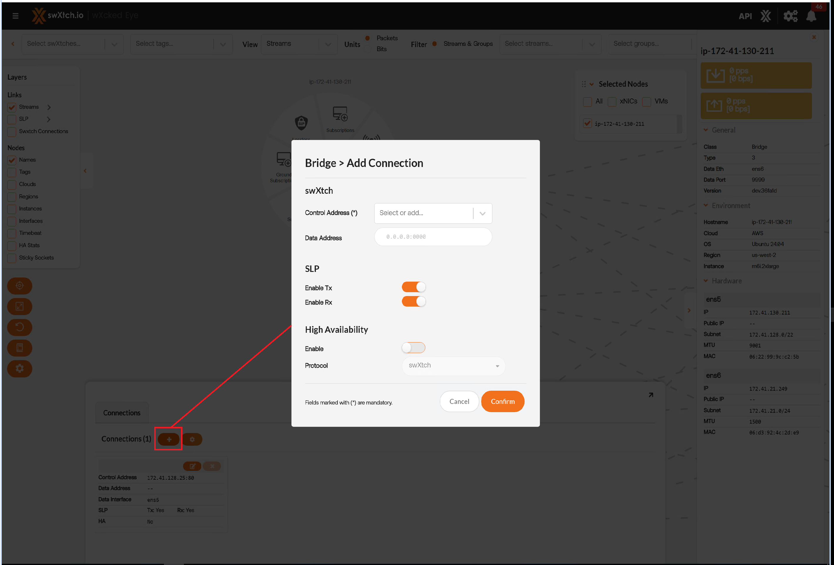 Select the cloudSwXtch to be added. The ones that exist via a cluster need not be added as they are already connected.