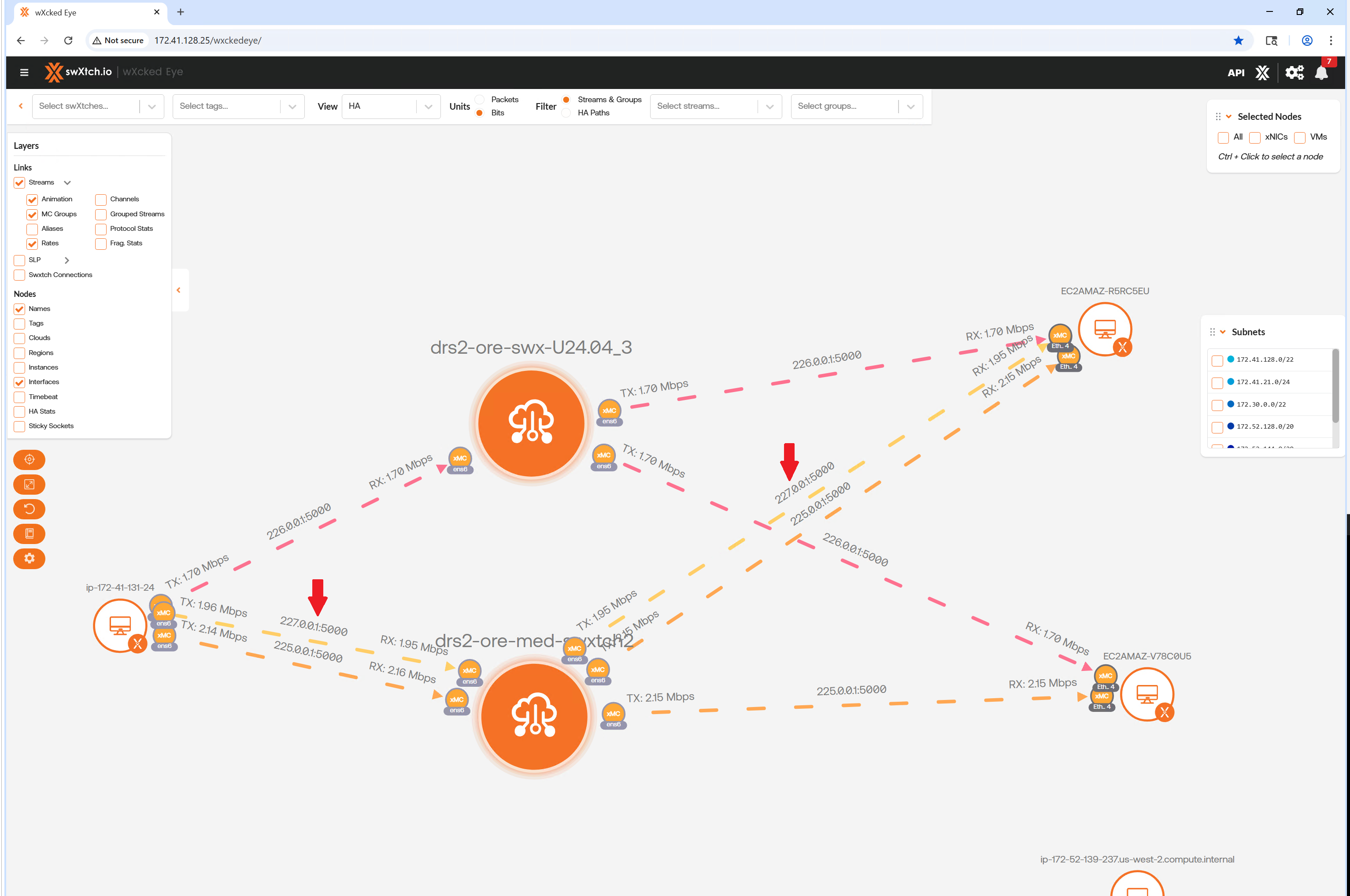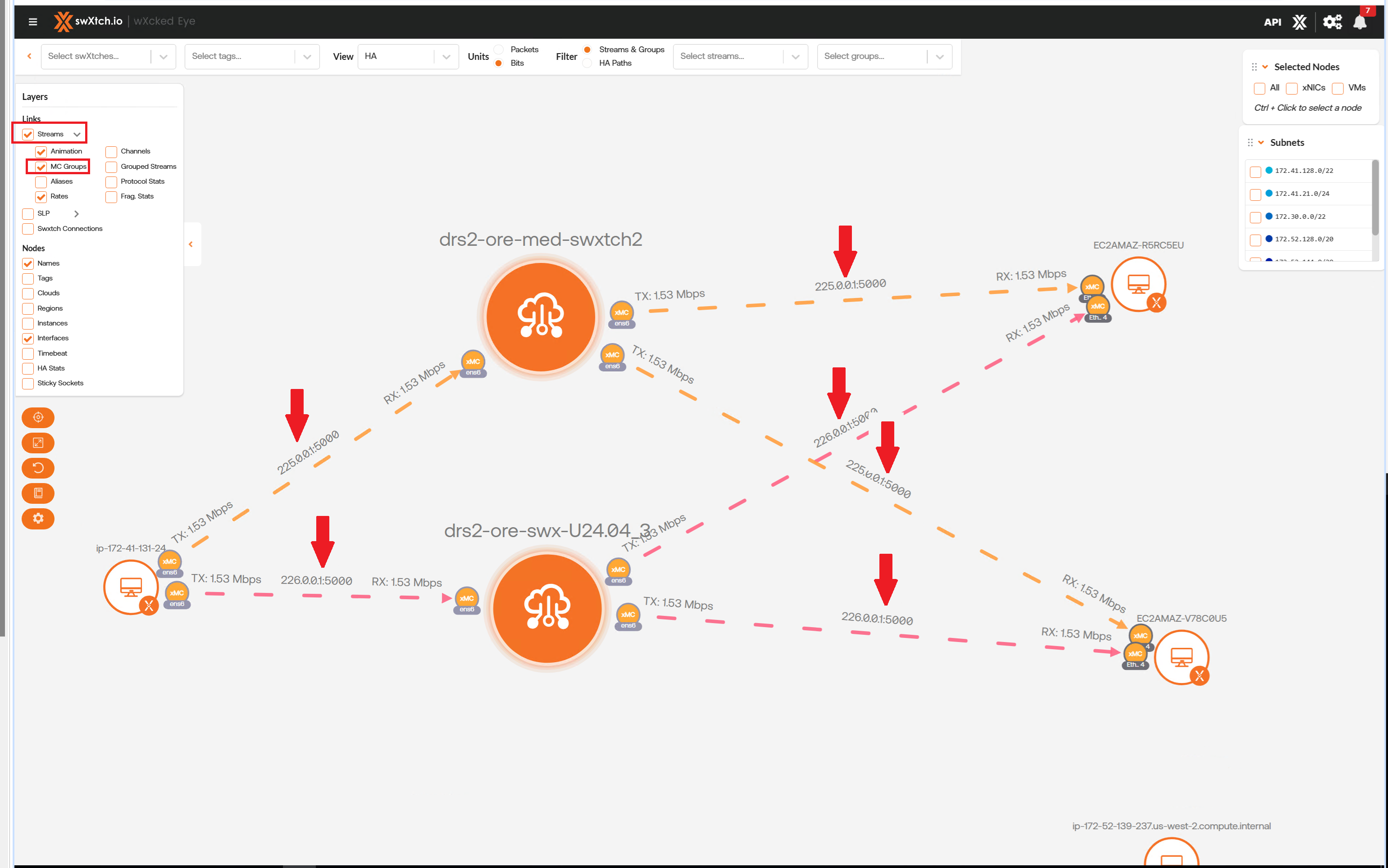 When looking at the Topology Graph “Stream Multicast Groups” you can see that, based on the configuration, the multicast data is segmented.