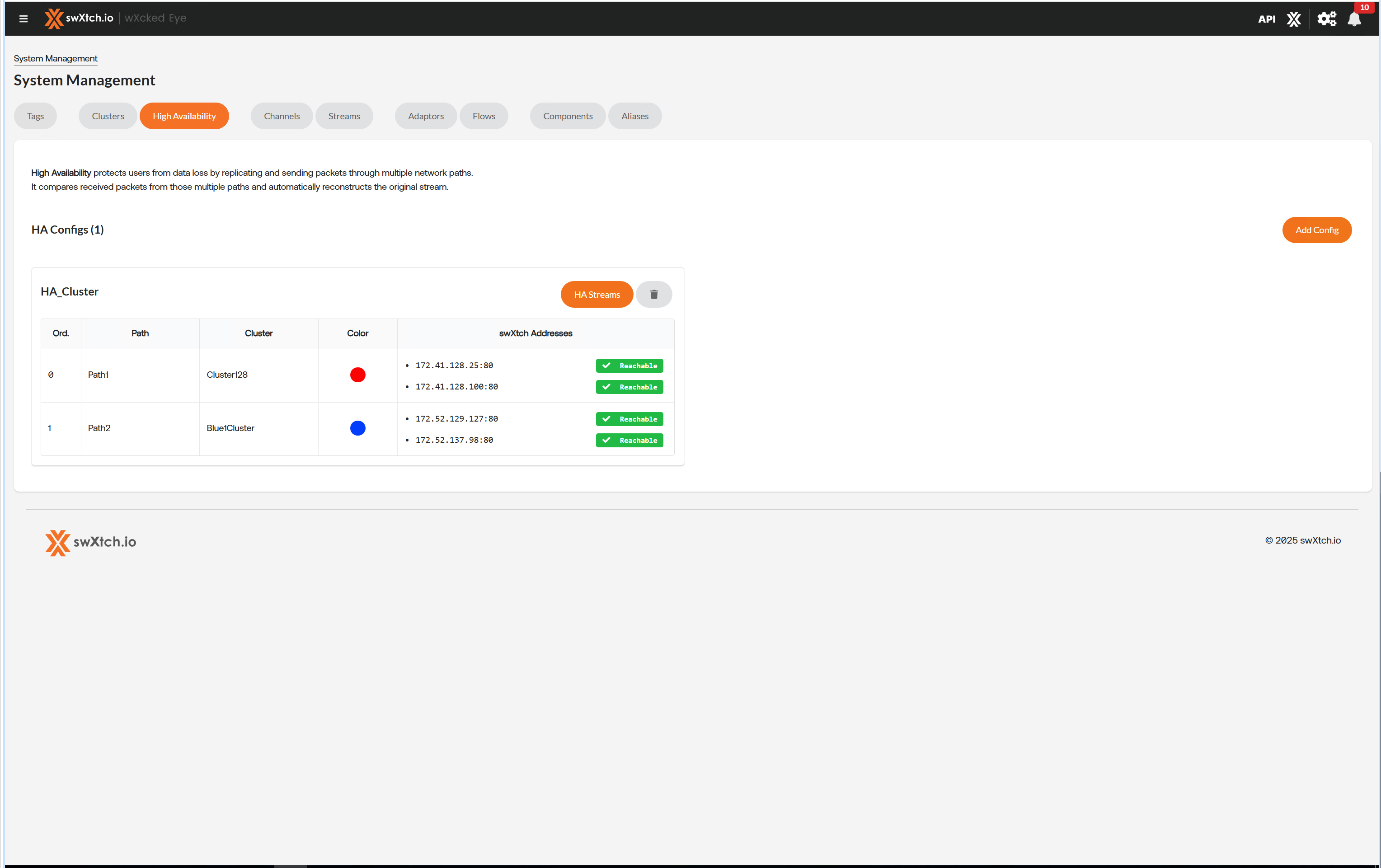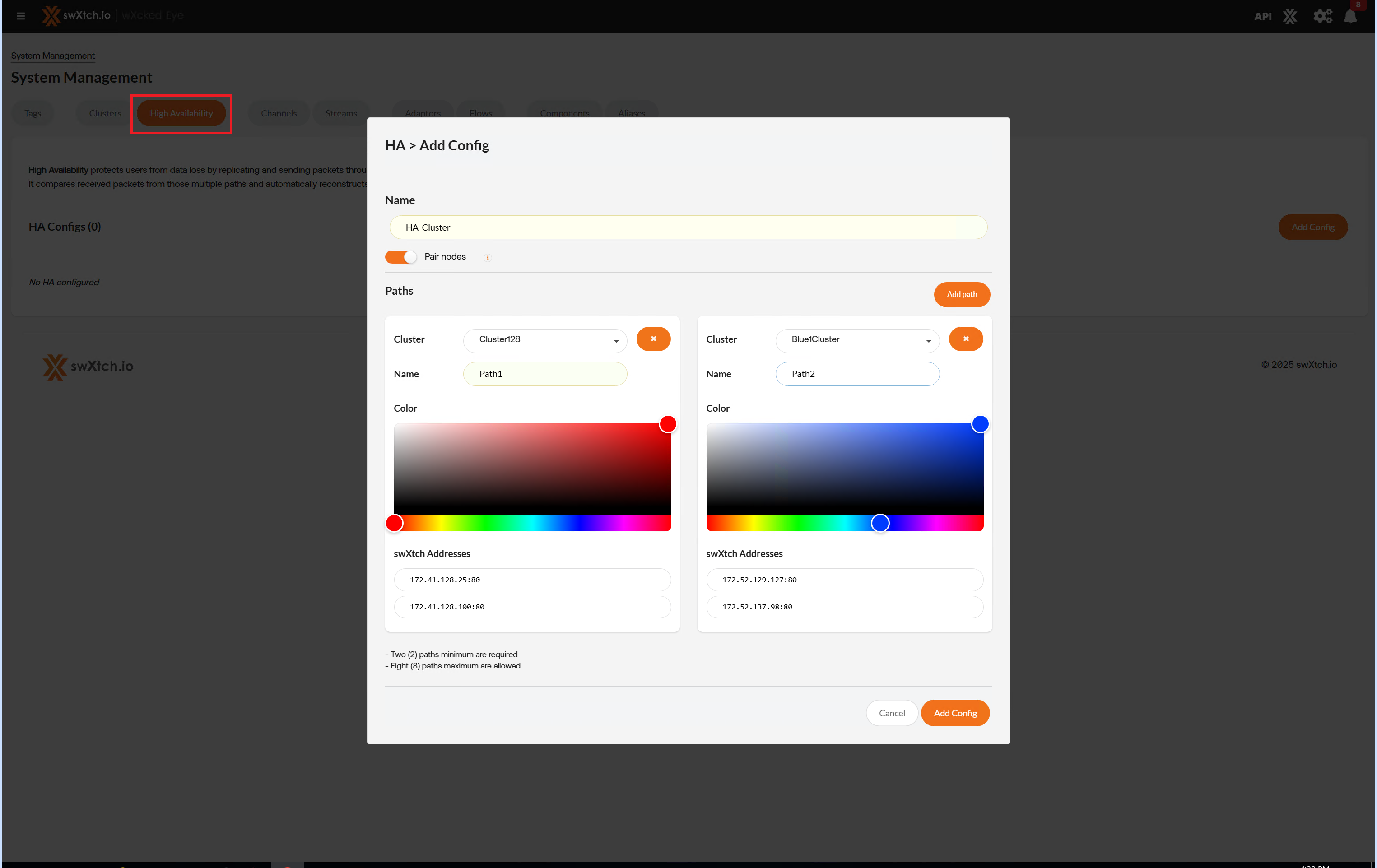 Continuing from the example above, you can create a second cluster for a second path for High Availability as shown below: