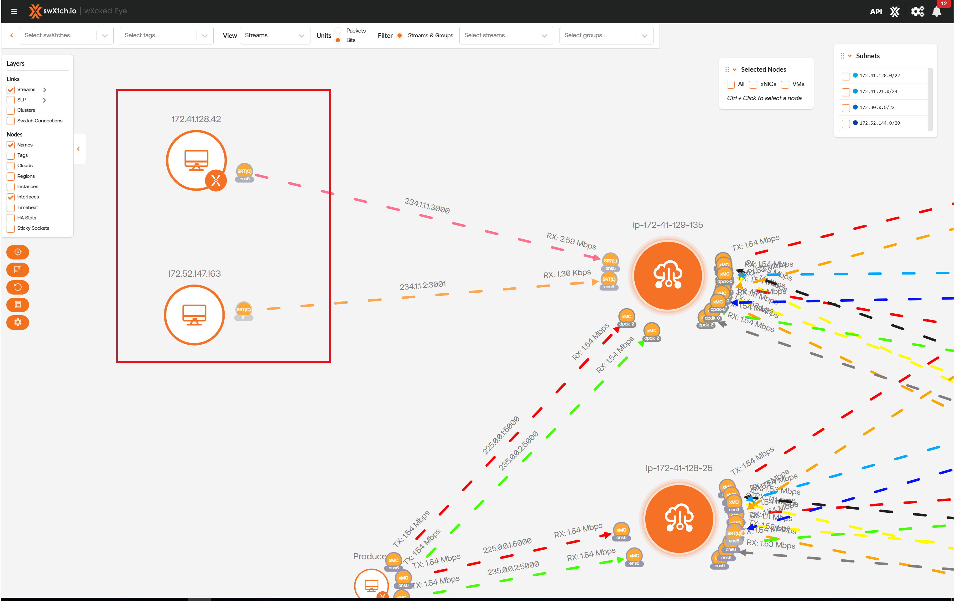 In this example, there are two different virtual machines displayed as separate nodes in the Topology Graph (172.41.128.42 and 172.52.147.163). However, they are actually the same virtual machine, just different interfaces with separate IPs. This is something that only a user will know.