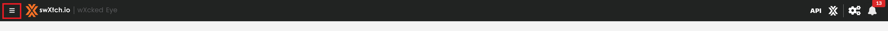 To navigate to various pages in wXcked Eye, click the menu icon (≡) next to the swXtch.io logo.