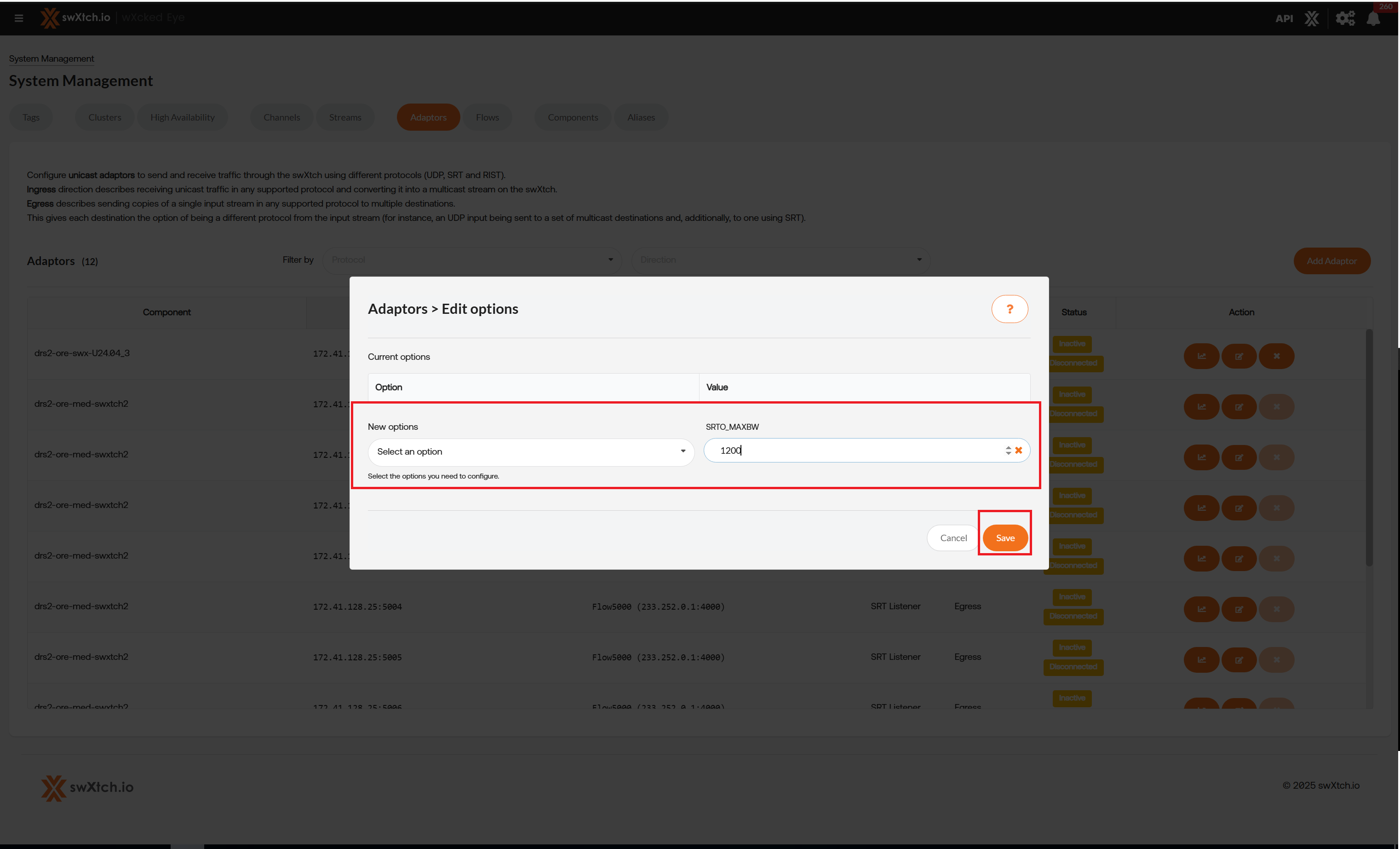 1. Then, users can select between three different protocols for their adaptor: UDP, SRT, and RIST (the last two as caller or listener)