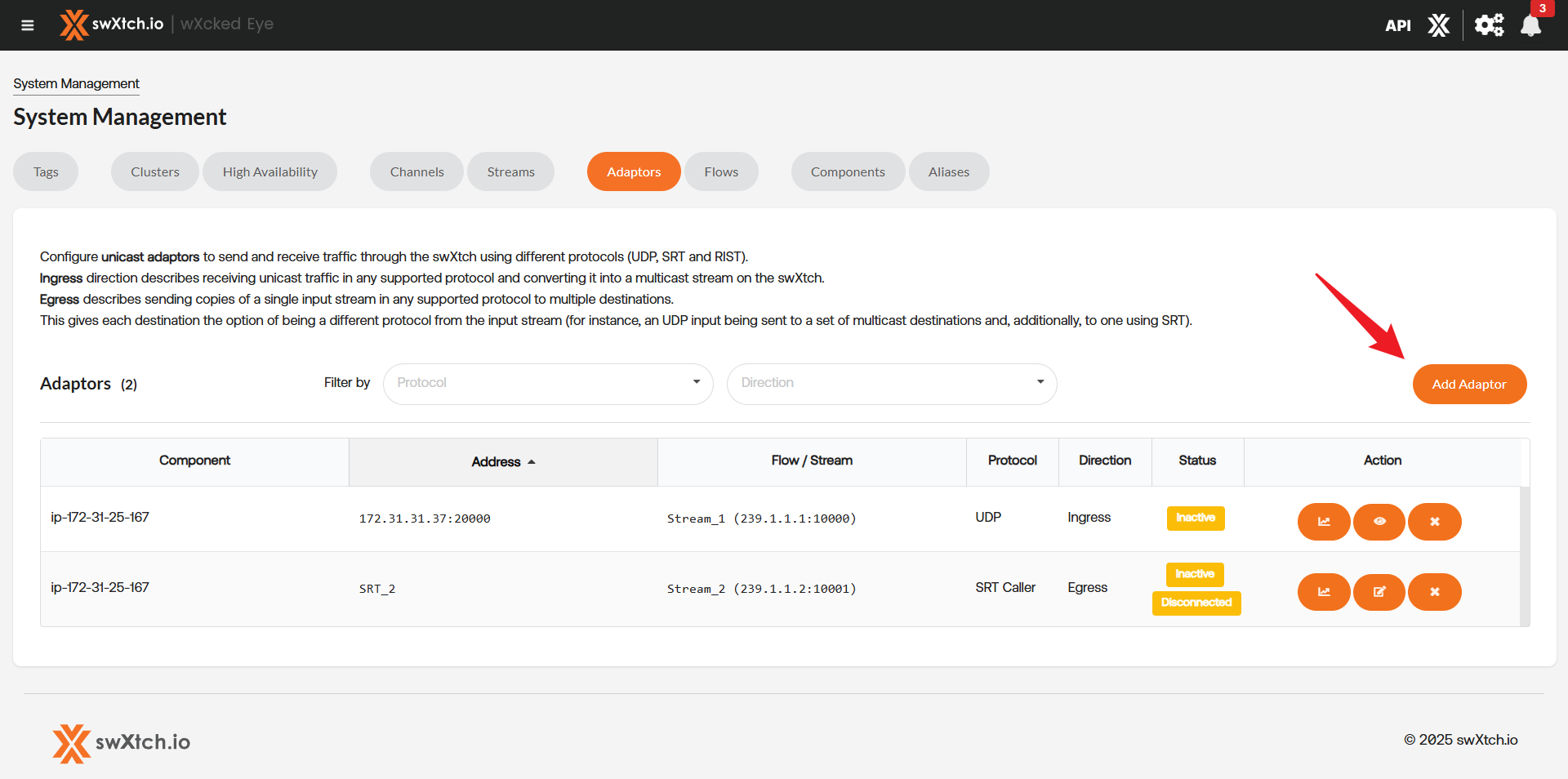 The Adaptors Tab is located in the System Management page on wXcked Eye. To learn how to navigate there, please review the wXcked Eye System Management article.