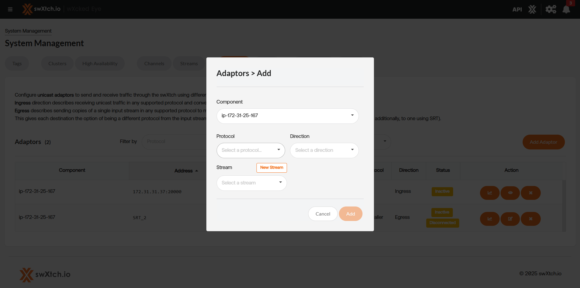 2. Select a direction: Ingress or Egress, and a Stream that can be an already defined Stream, or create a new one.