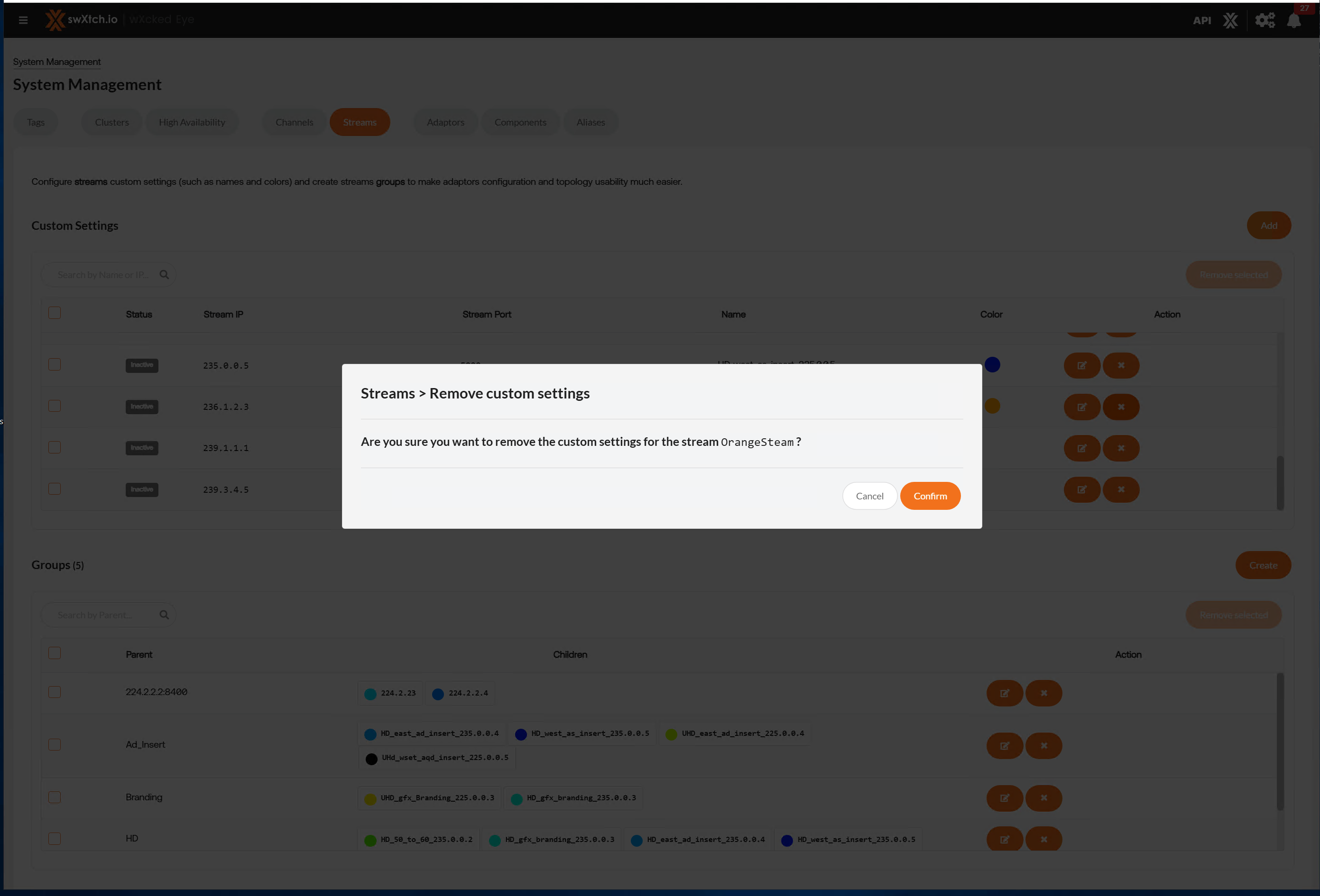 This will only delete the Stream’s name and color designation from the wXcked Eye UI. If the cloudSwXtch still detects the stream, it will still be listed under Streams.
