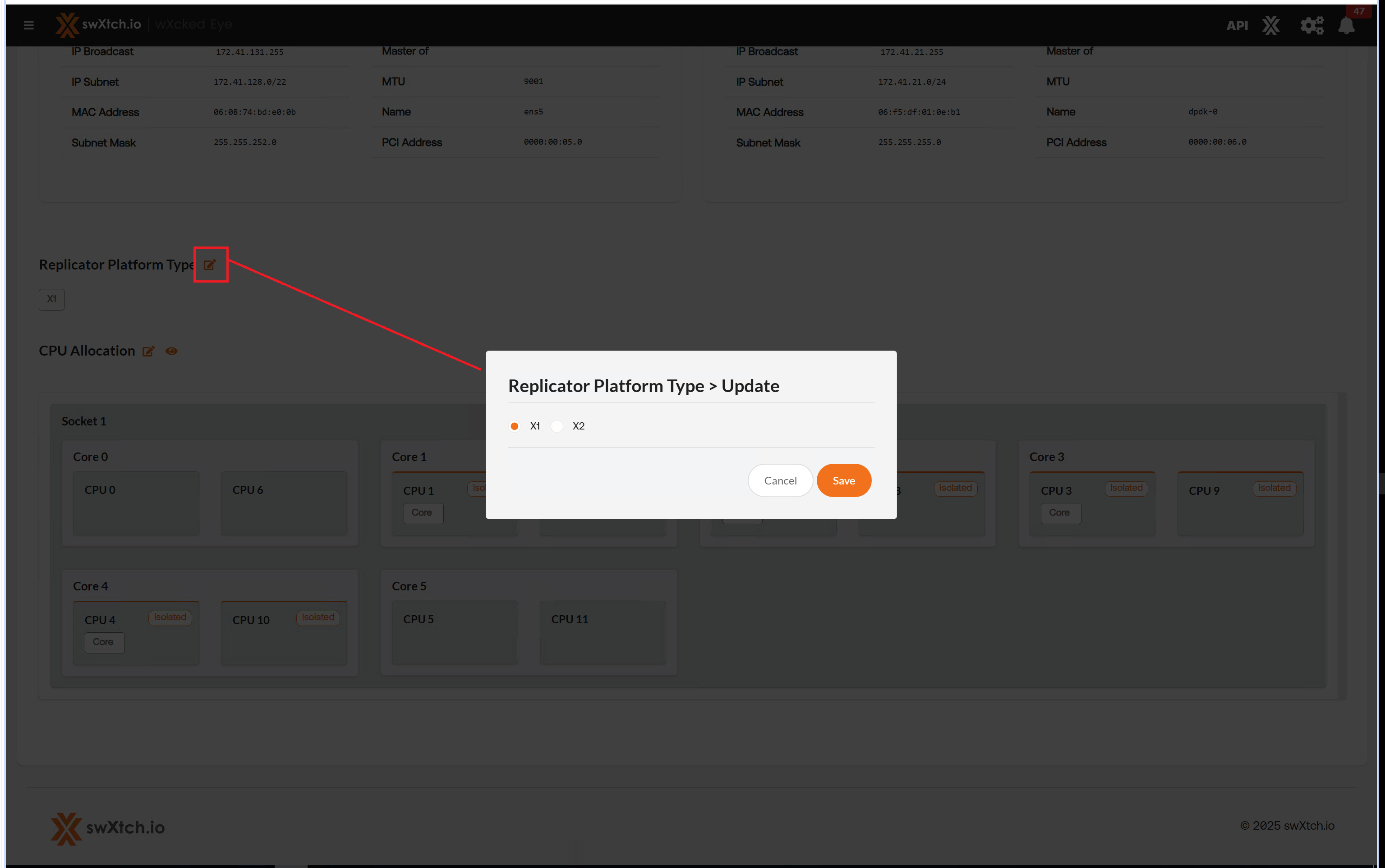 There are two types for the replicator, by selecting the edit page the type can be changed. The default is type 1. Note that this change will restart the data plane only. Contact support before changing this setting by emailing support@swxtch.io.