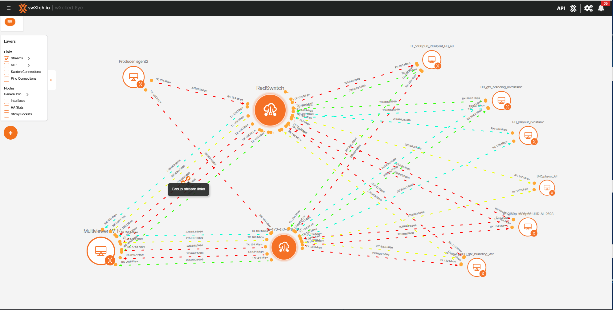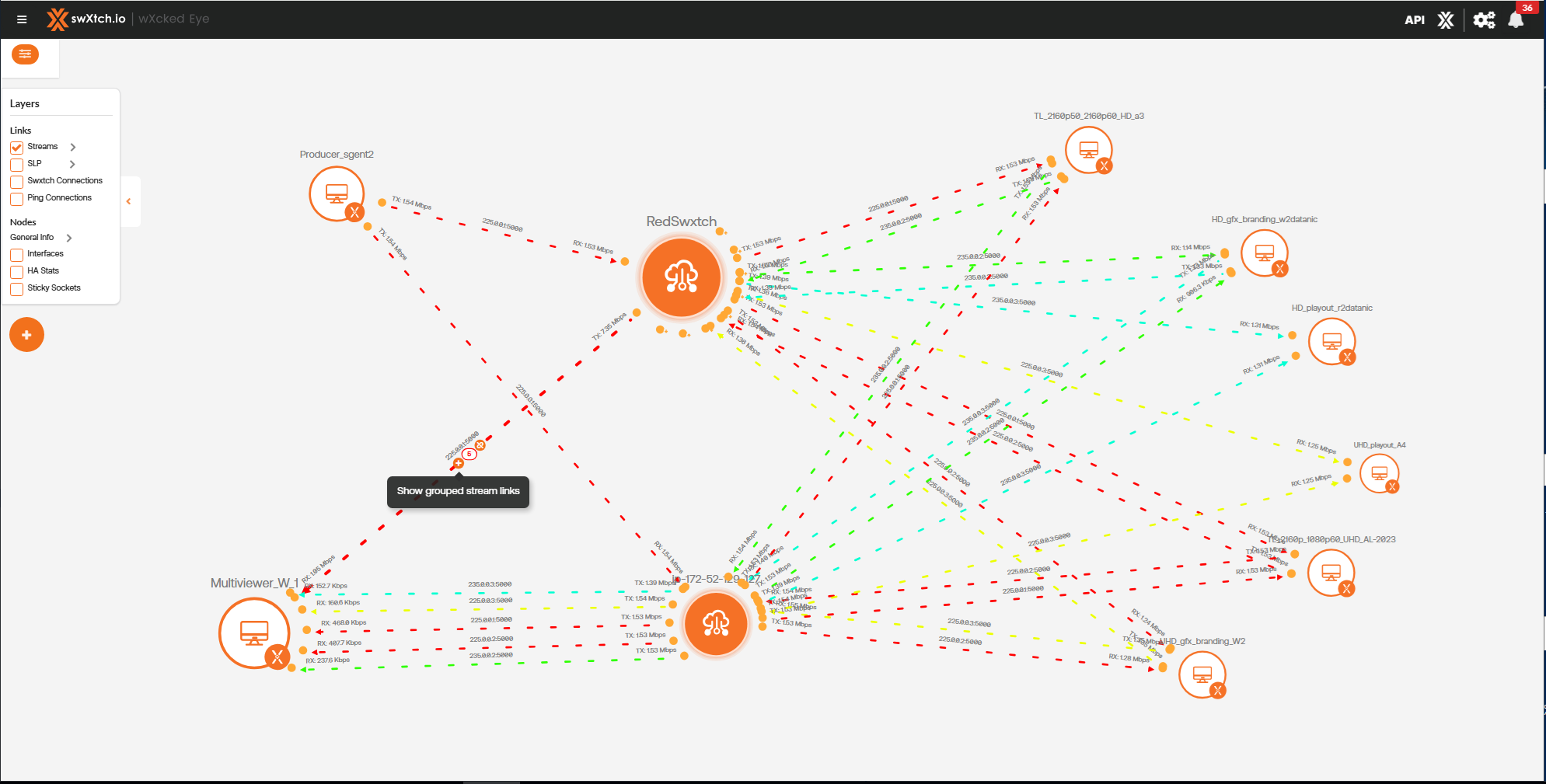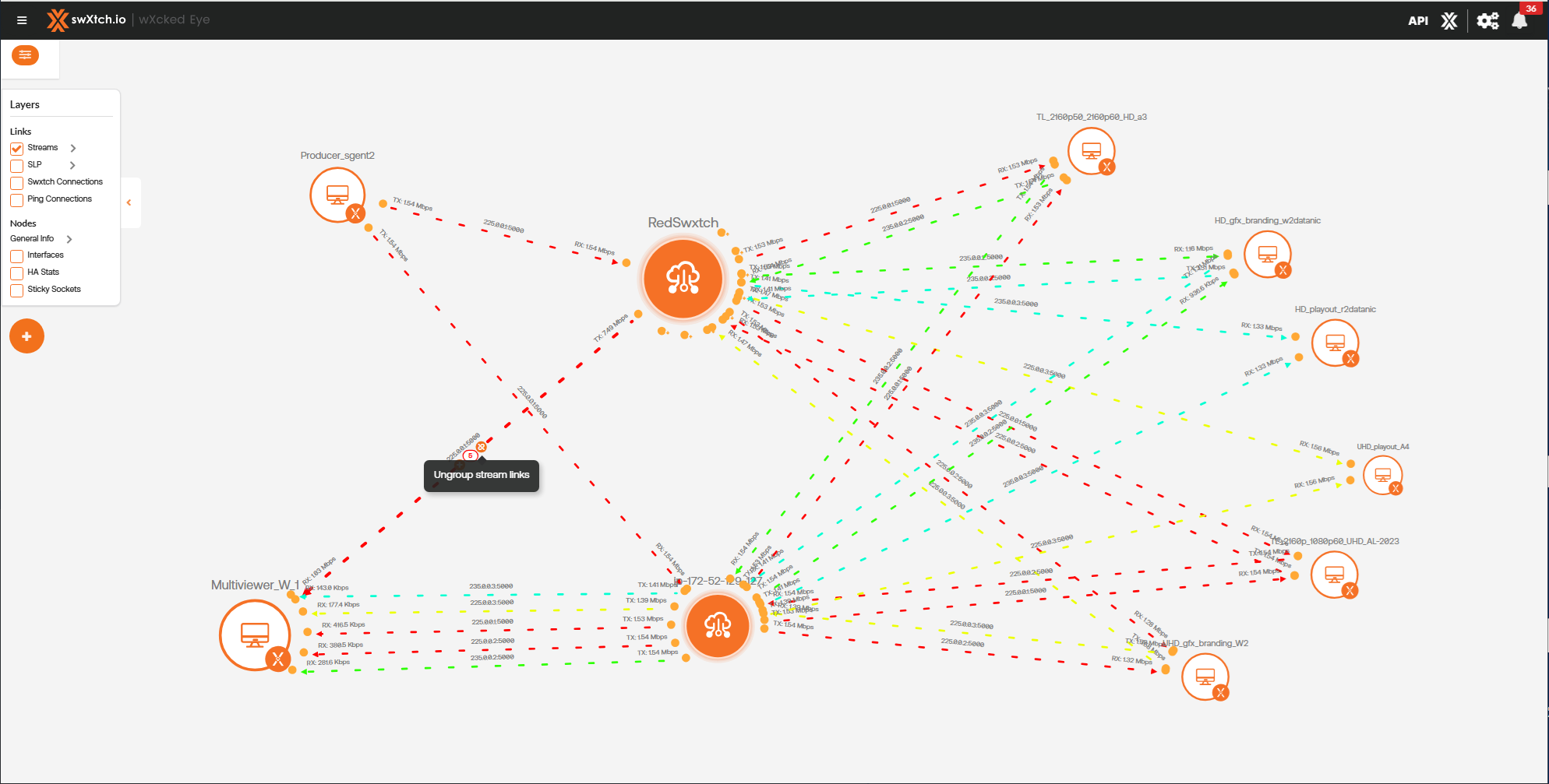 Below is an example before the stream links are grouped between the cloudSwXtch and the xNIC.