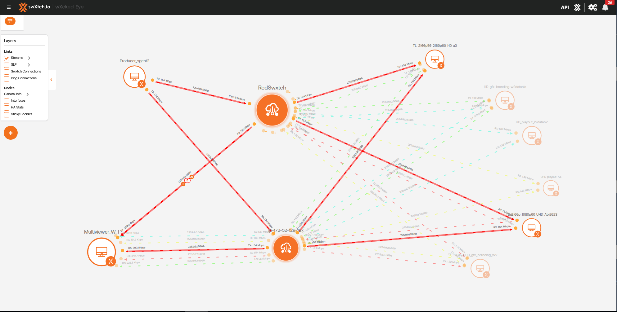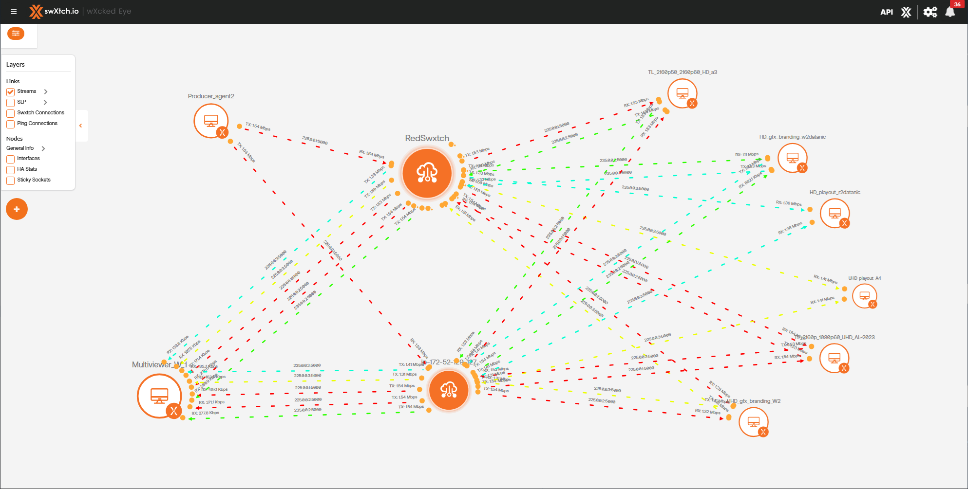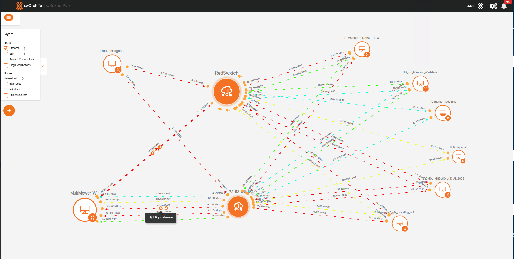 Below is an example before the stream links are grouped between the cloudSwXtch and the xNIC.