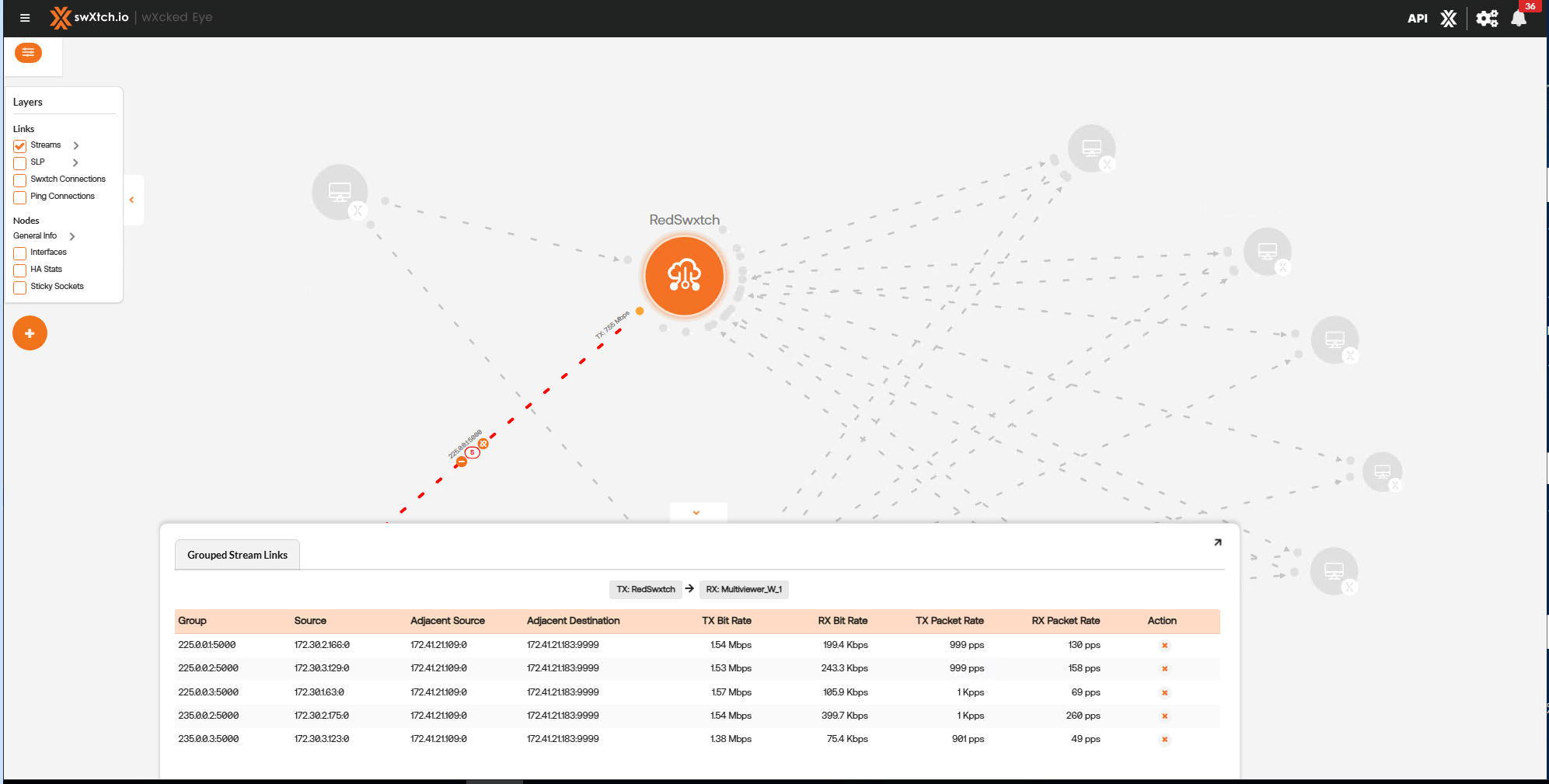 By selecting the “+” button, users can see the details of the streams within the linked multicast groups.