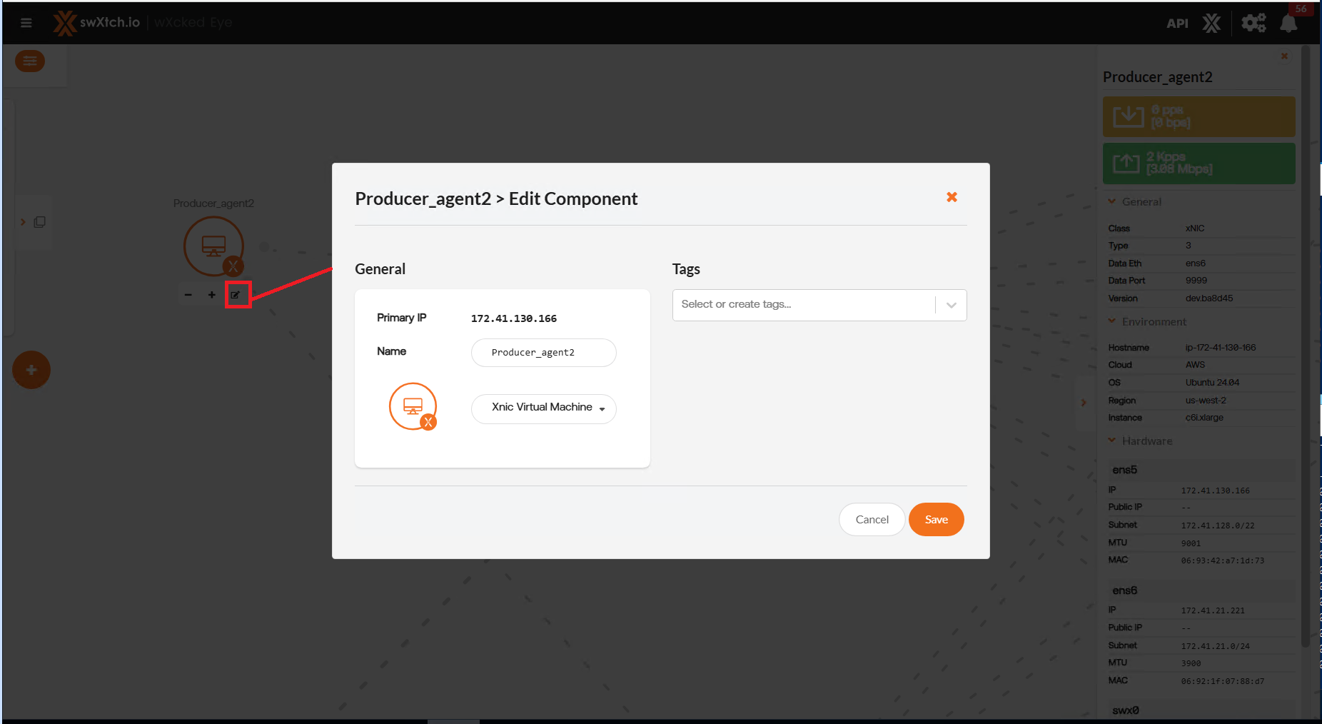 Select the edit button to rename or to add tags to a component.